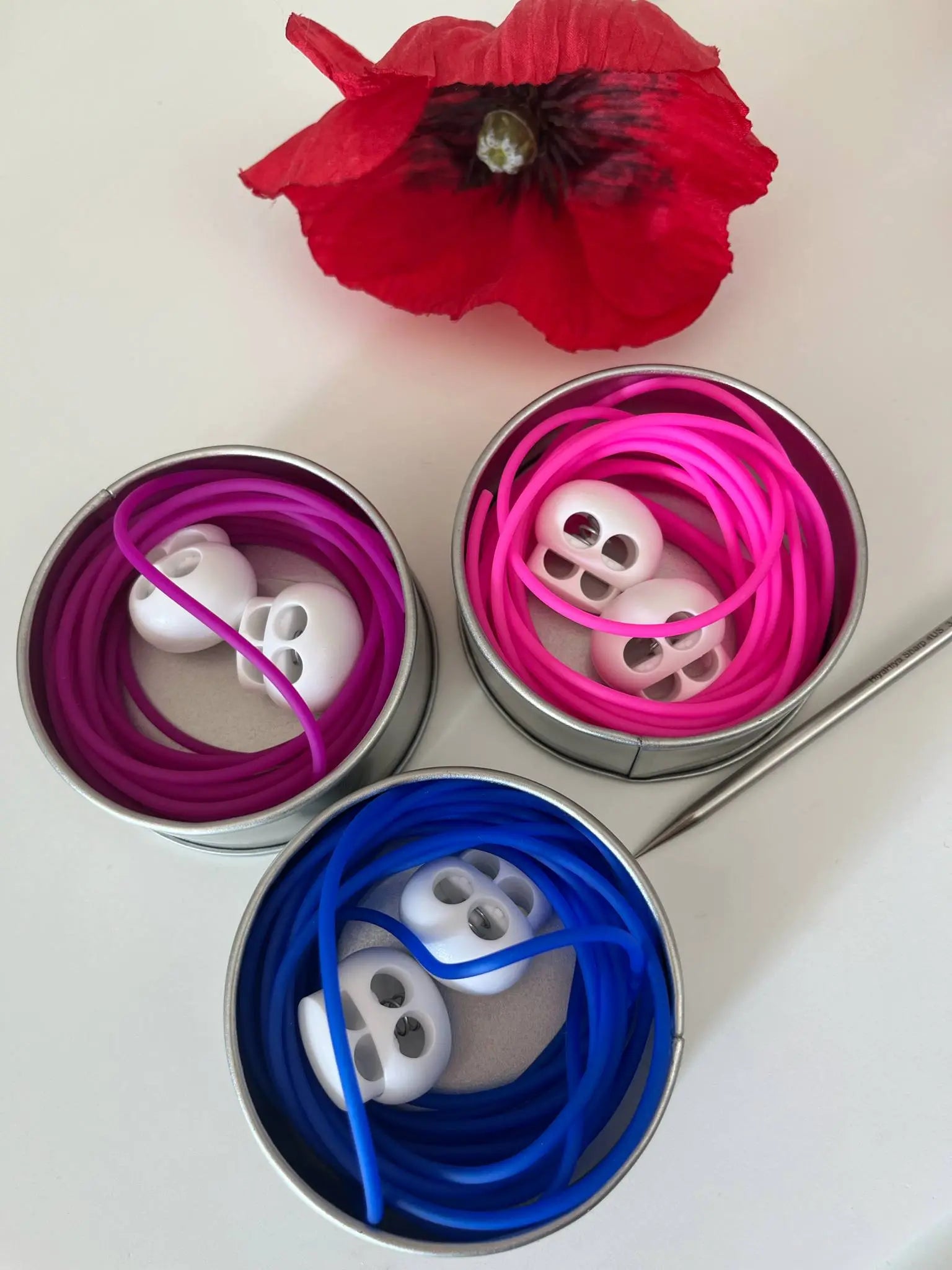 – un long cordon en silicone souple (3 mètres, non coupé, pour s’adapter à toutes les formes et envies),