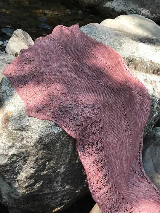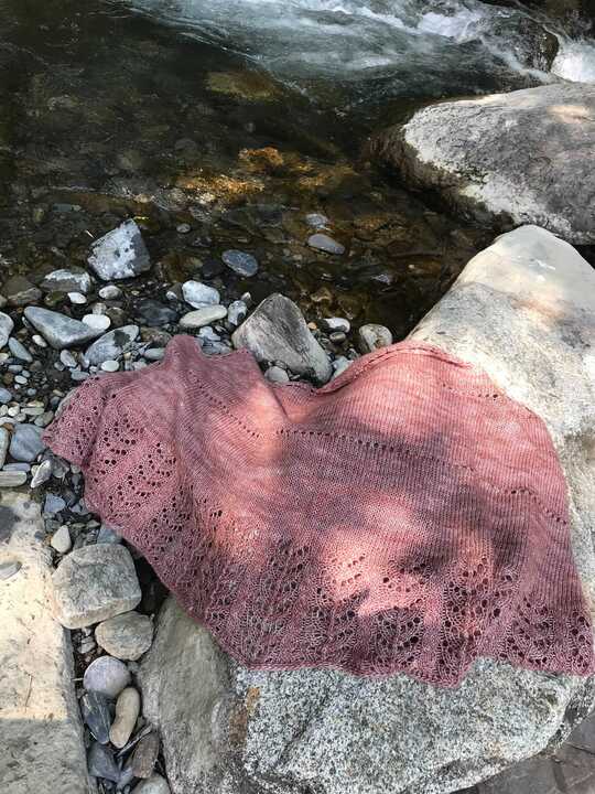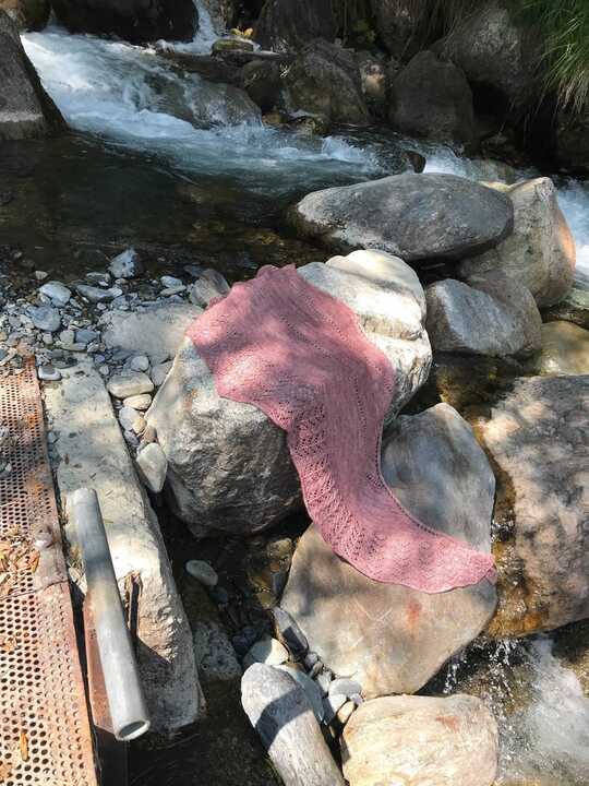 Le châle Amour toujours te dis quelque chose? Il s'agit en effet de la grande version du châle Aiko. Il se tricote en déjauger du jersey vers la dentelle. Cette dentelle, légère et aérienne est très fine et féminine.