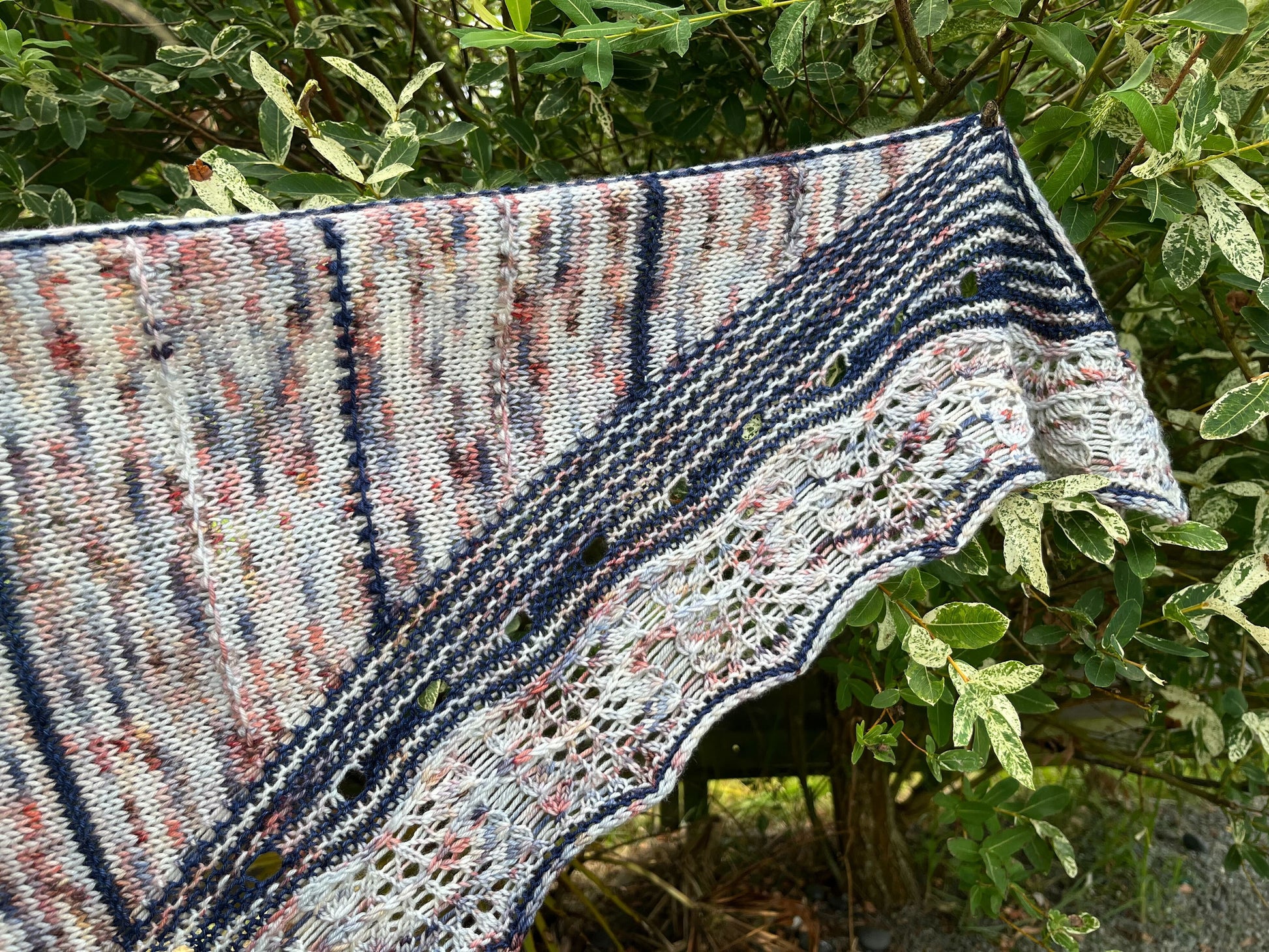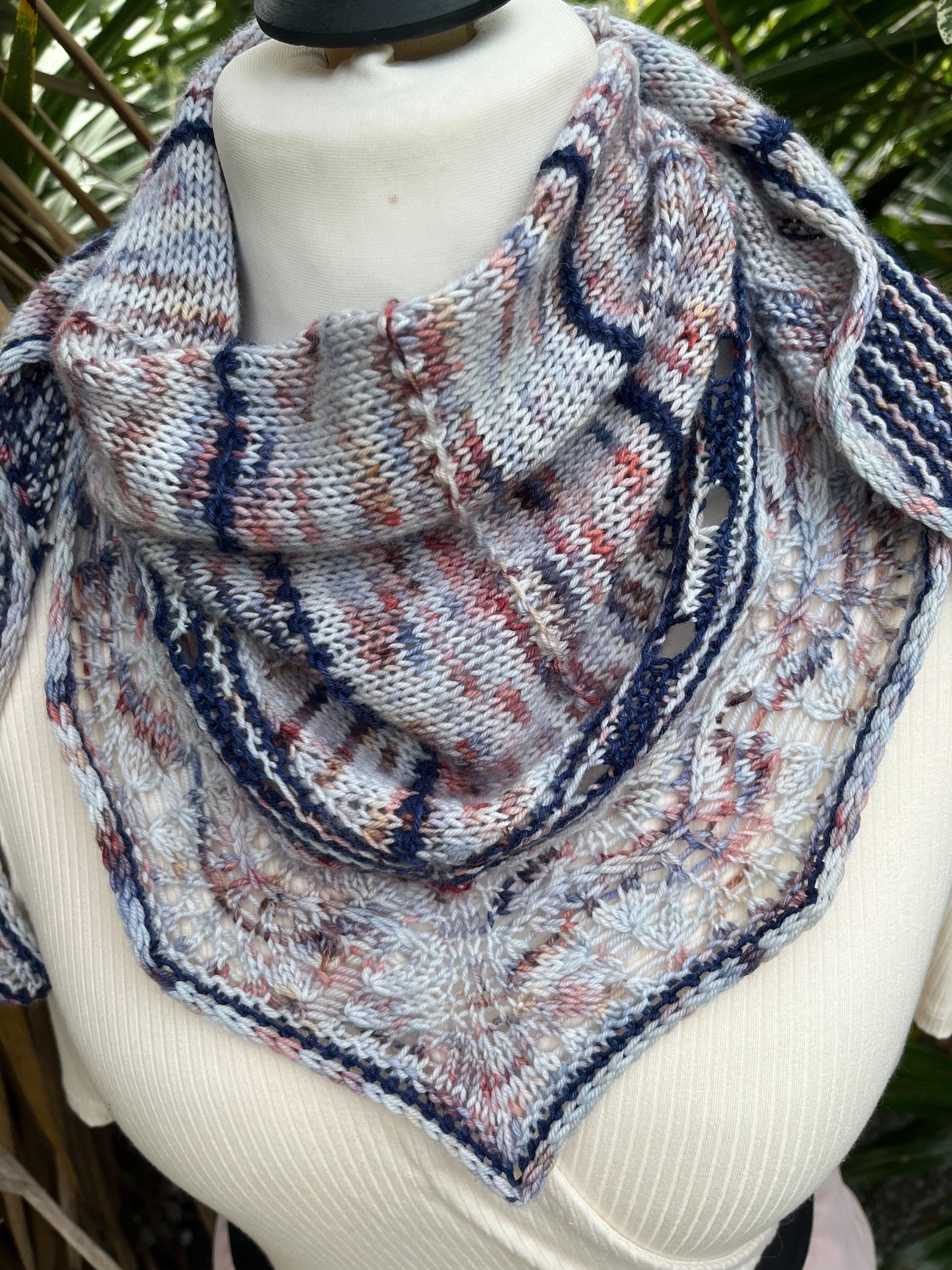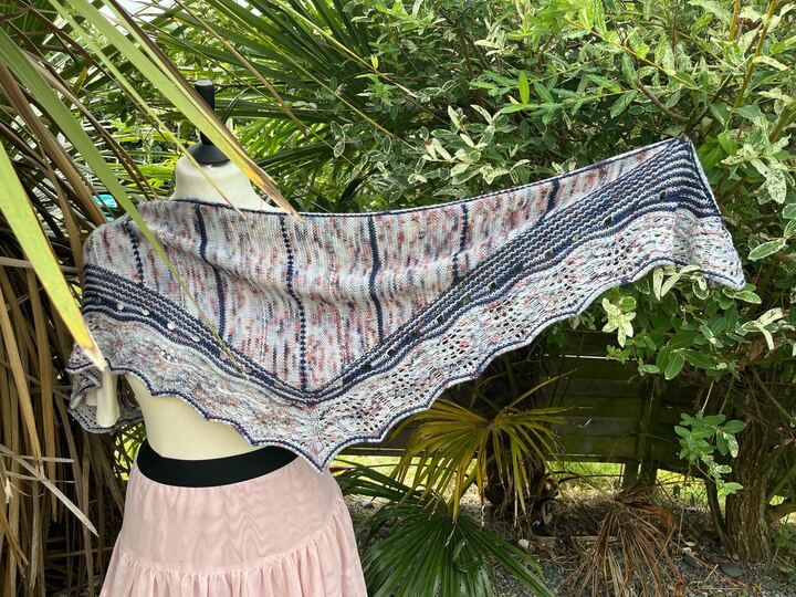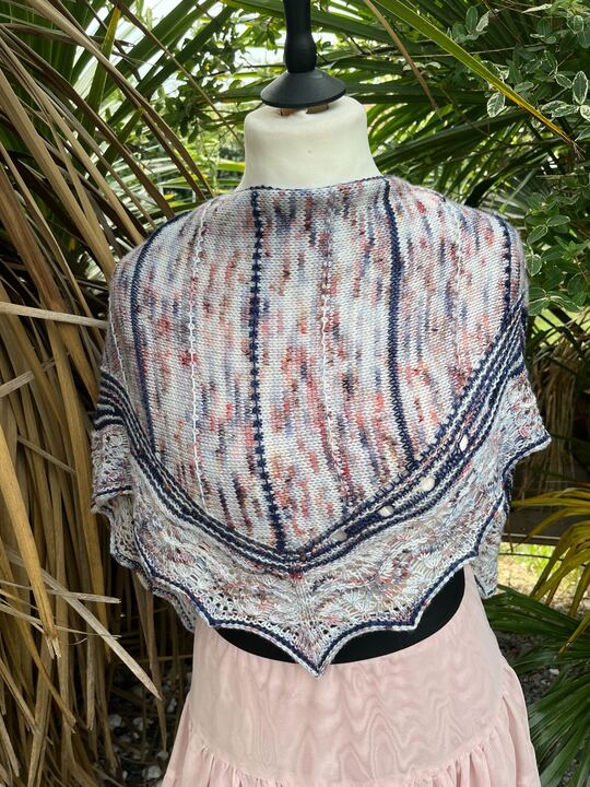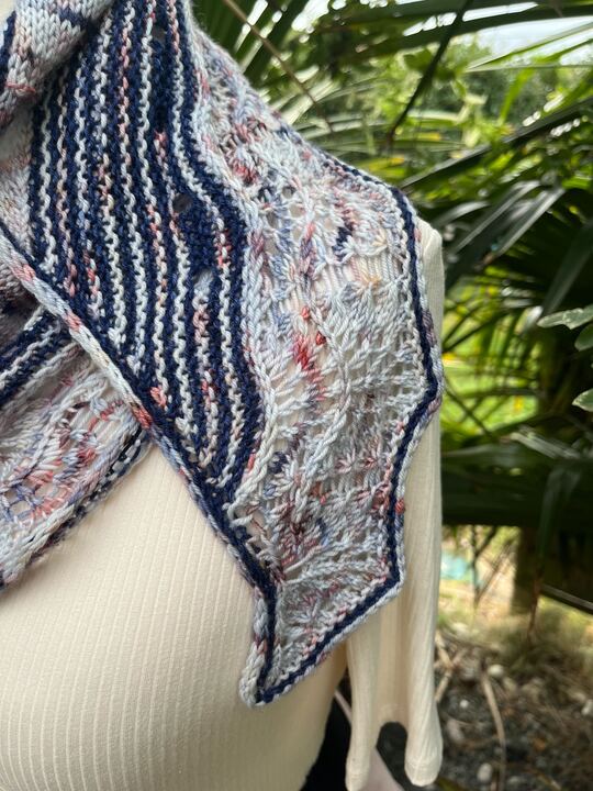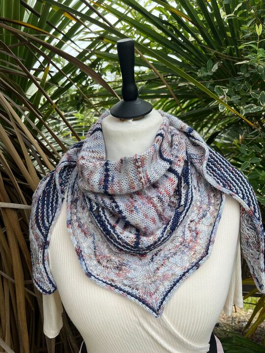 Je vous présente le Châle Osono, le châle design que je sors en collaboration avec Ludivine alias Arcoiris Yarns pour le festival du Knit Eat.