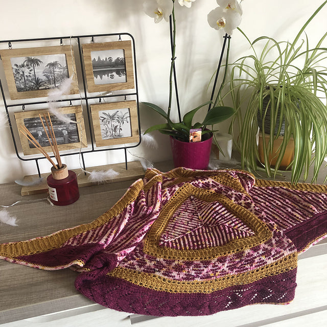 Bravo vous êtes venu(e)s à bout des indices et vous allez pouvoir porter votre joli châle Psyché ! Je suis fière de vous et j’ai hâte de voir vos jolies versions.