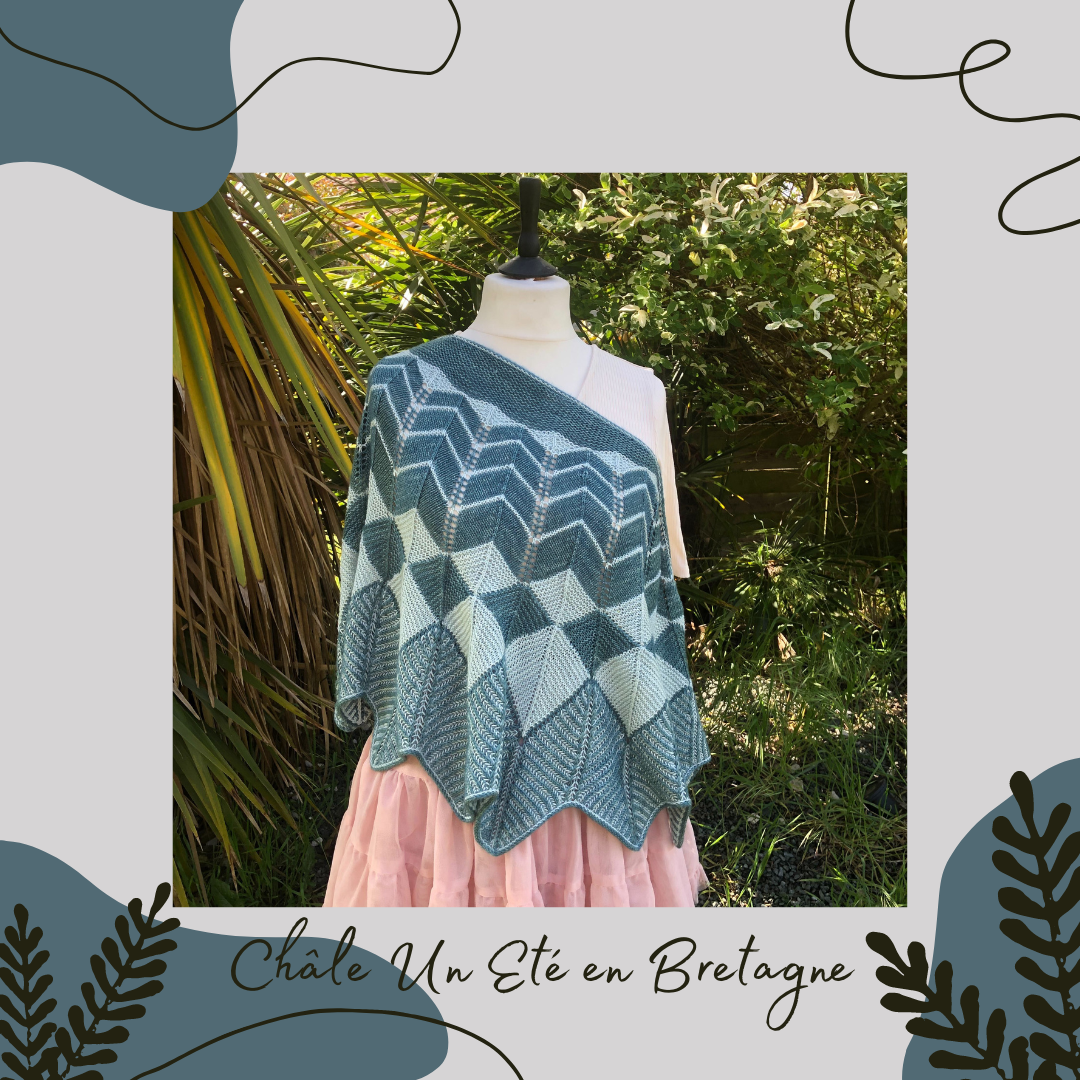 Un Eté en Bretagne est un châle d’inspiration graphique et géométrique. Il est à la fois chic et élégant et saura vous challenger tout au long de sa construction.