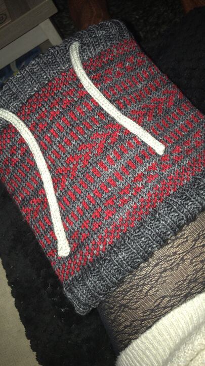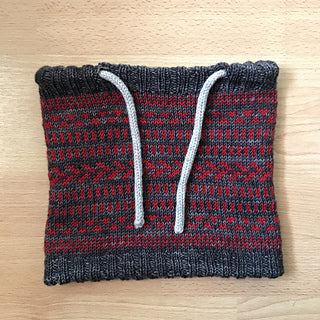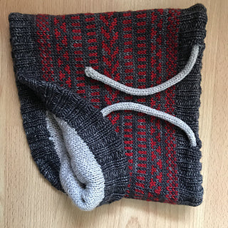 J'ai imaginé ce col tout doux pour mon petit garçon de 5 ans qui voulait un snood avec des dessins rouge et gris. Pour son confort et le votre je l'ai voulu doublé en laine douce, ici la arwetta de Filcolana.