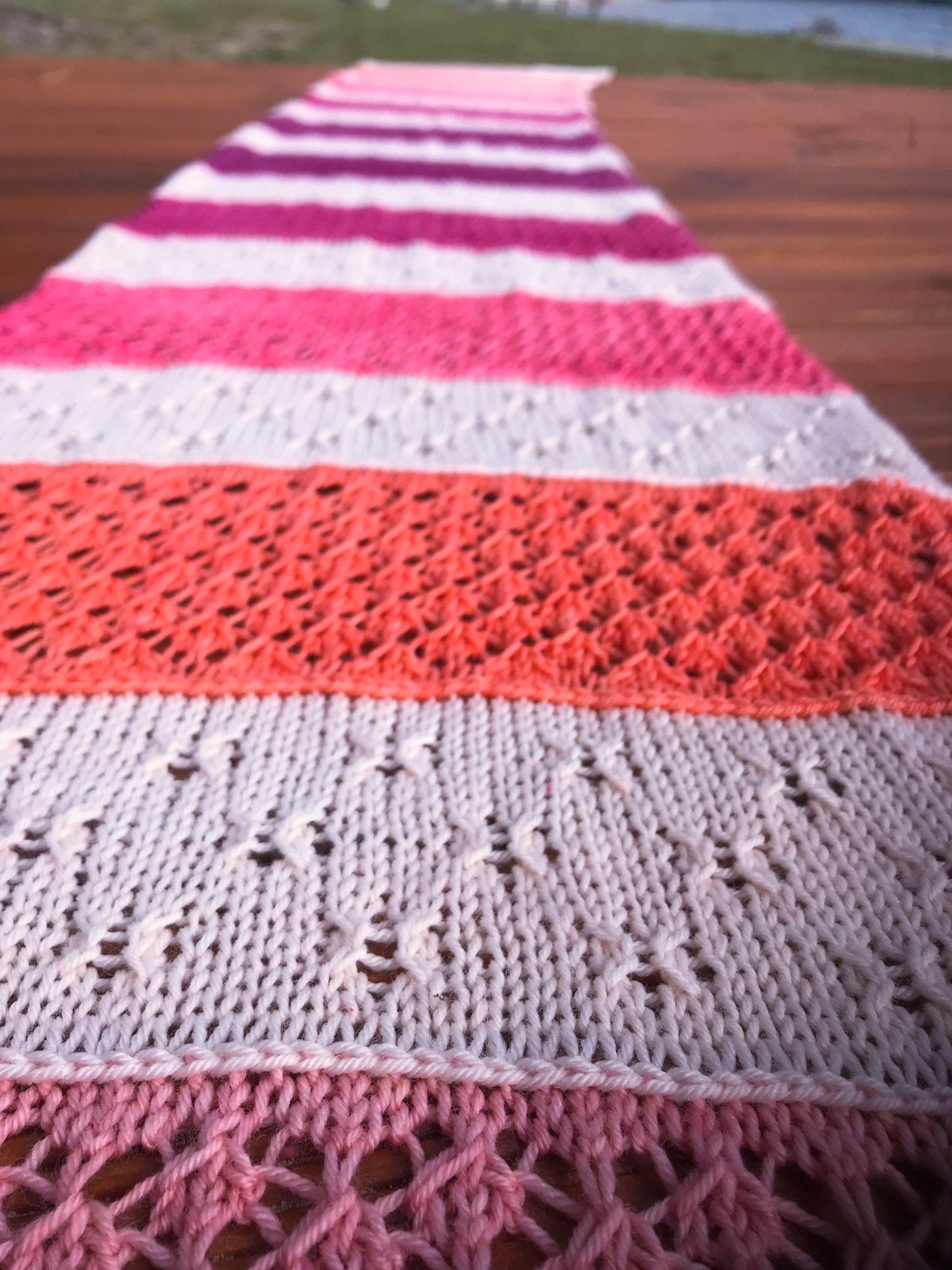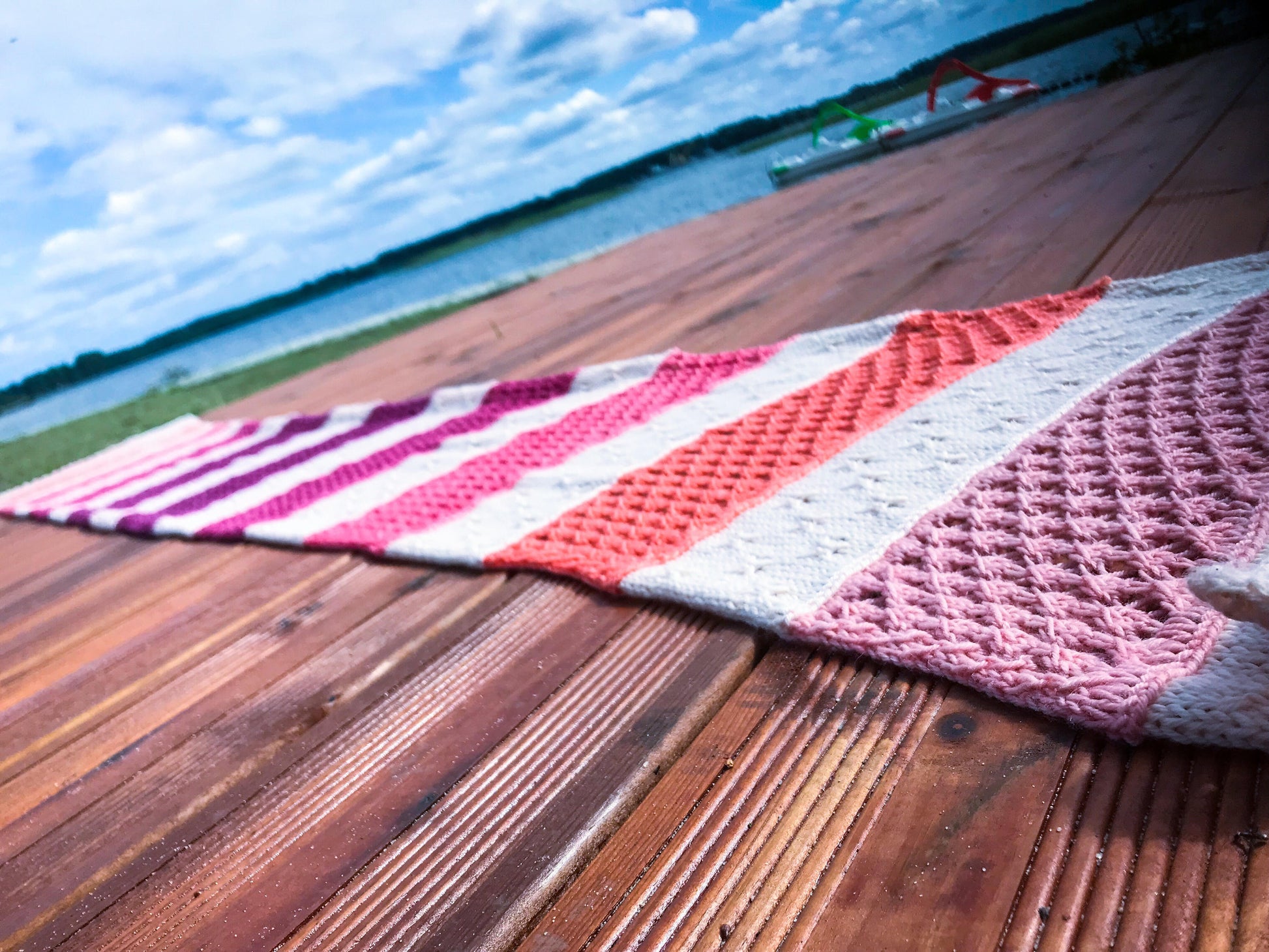 Tu peux t'amuser avec les laines sur ce design! Il se compose de répétition de section. Il peut donc être uni ou bicolore, ou bien user tous tes restes en étant un arc en ciel de couleur!