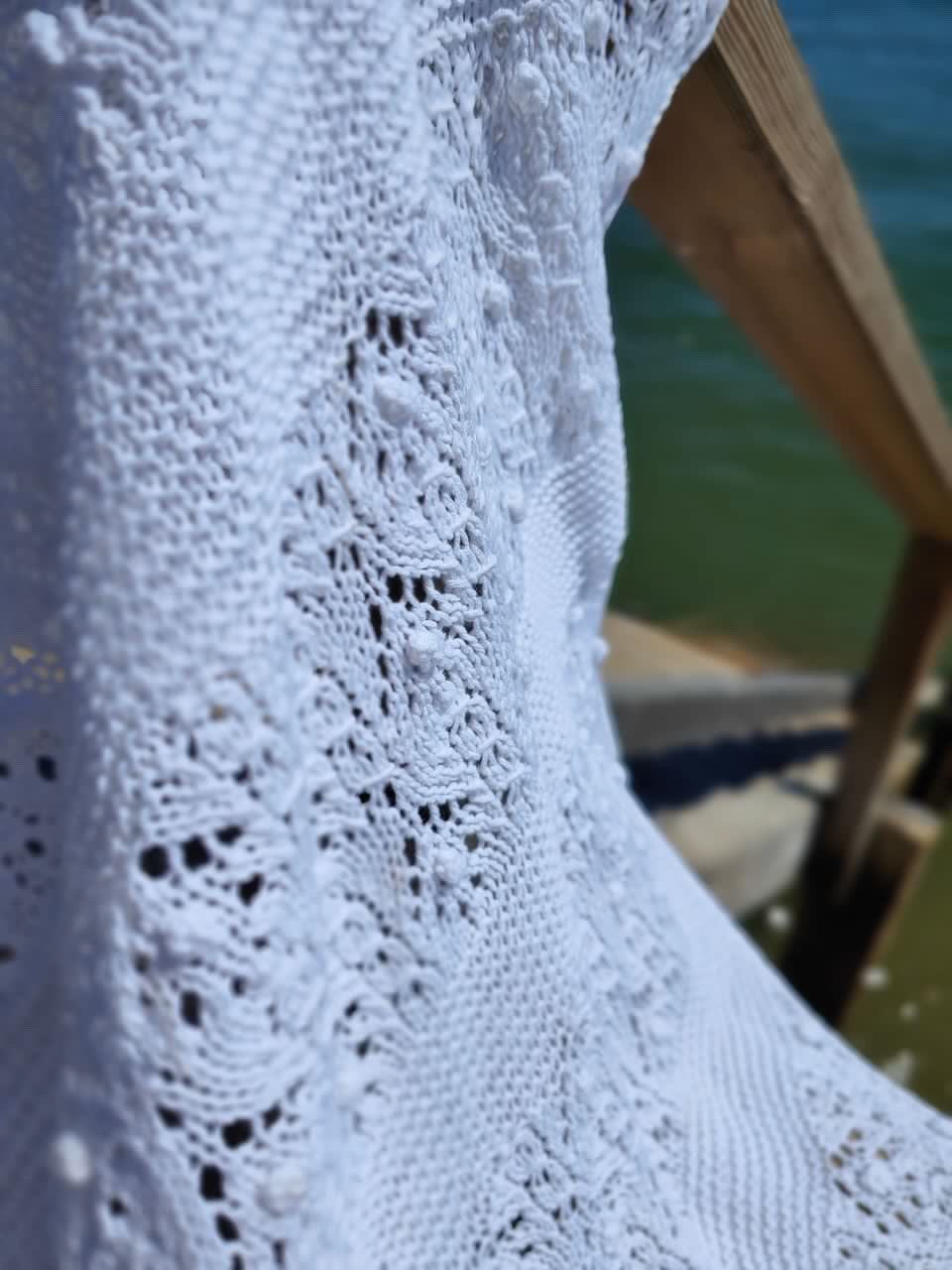 Son coton cachemire était le fil idéal pour une étole aérienne qui révèle magnifiquement le point de dentelle.