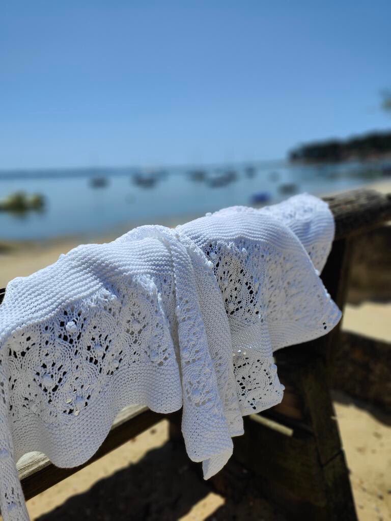 J’ai imaginé l’étole Once Upon A time comme une étole de mariage (ou de baptême) et j’ai choisi de la réalisé dans le coloris Coco de Lolilafée, en collaboration avec Lolita.