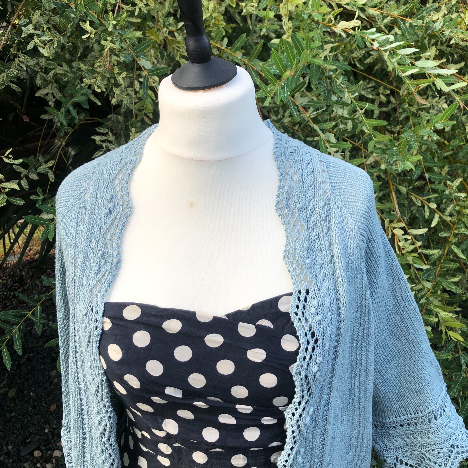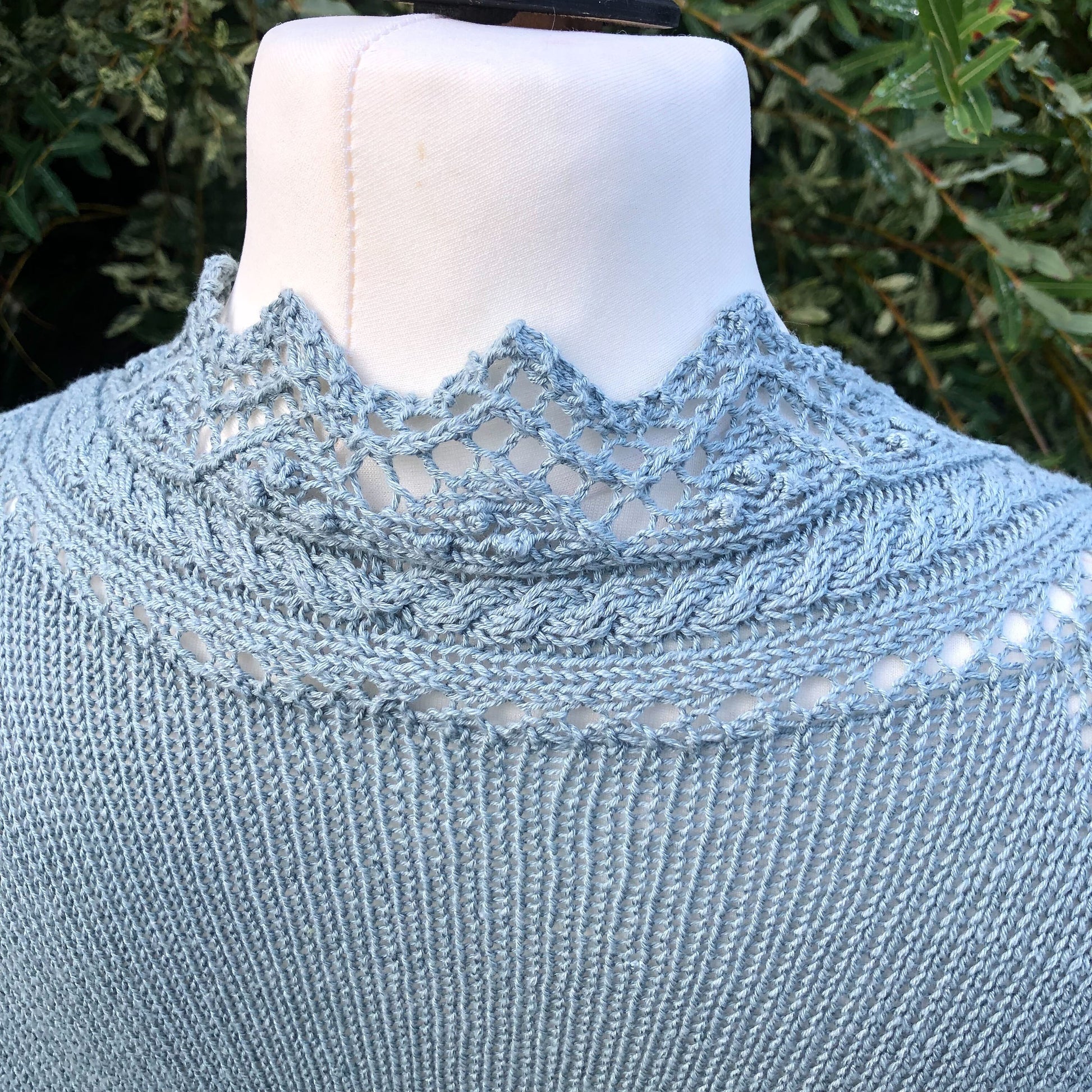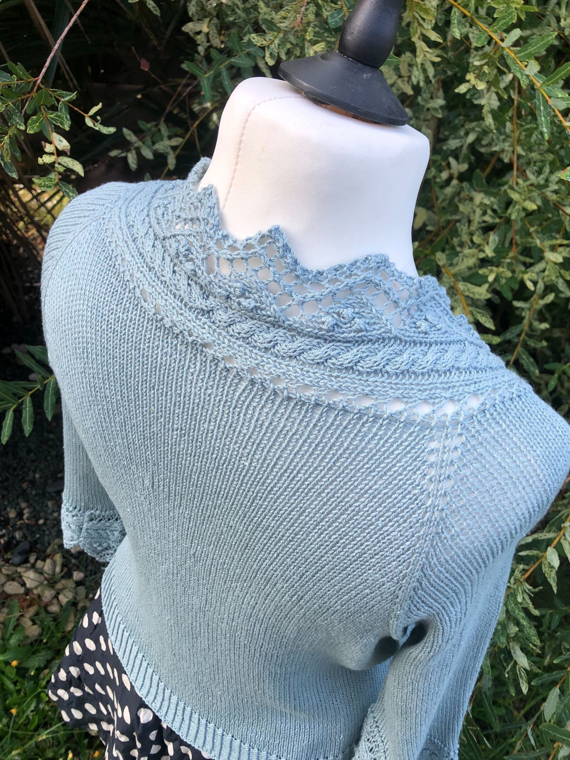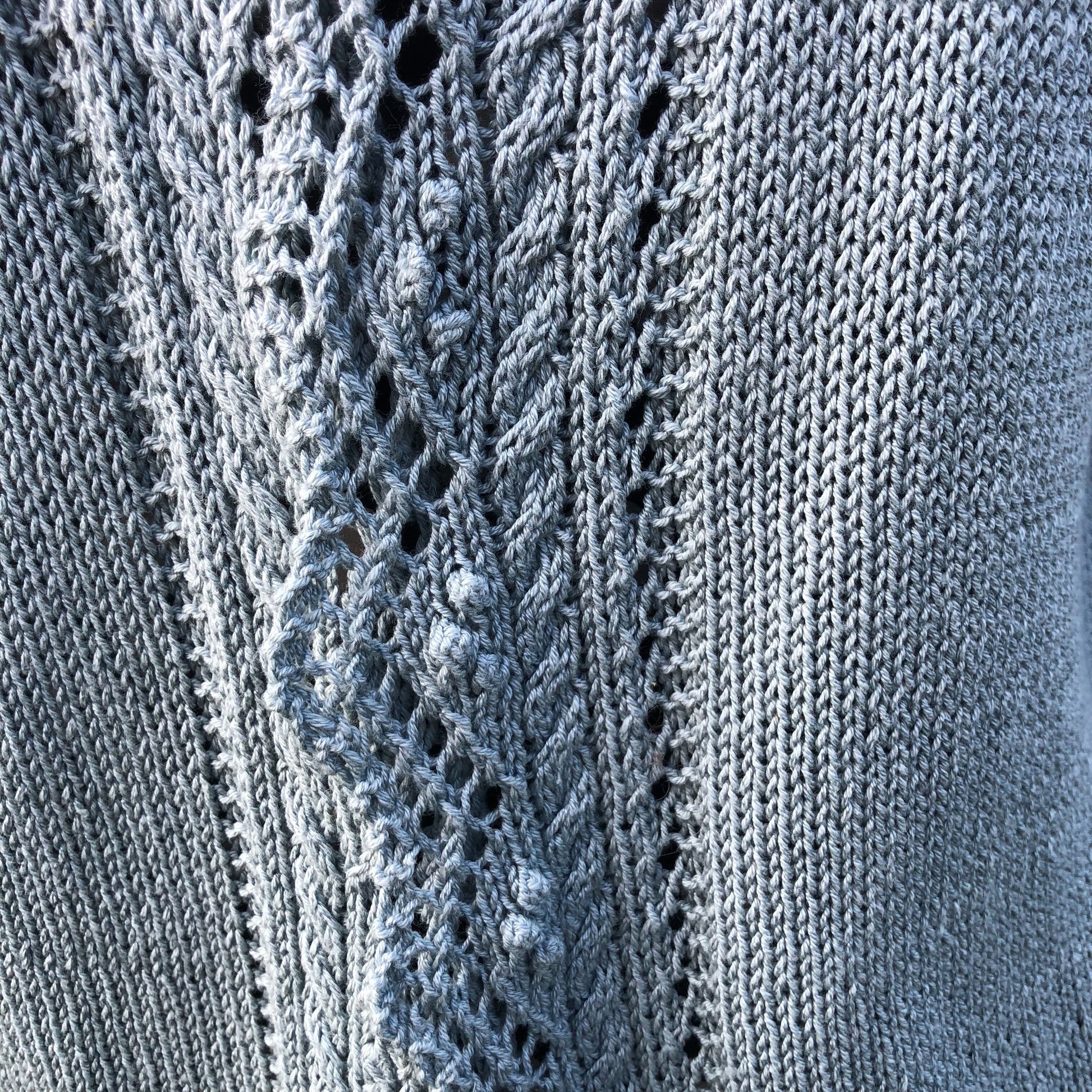 Givre est un gilet top-down avec une jolie finition en dentelle qui se tricote en même temps que le corps. Les manches larges façon kimono sont elles aussi parées de dentelle à la place de côtes classiques.
