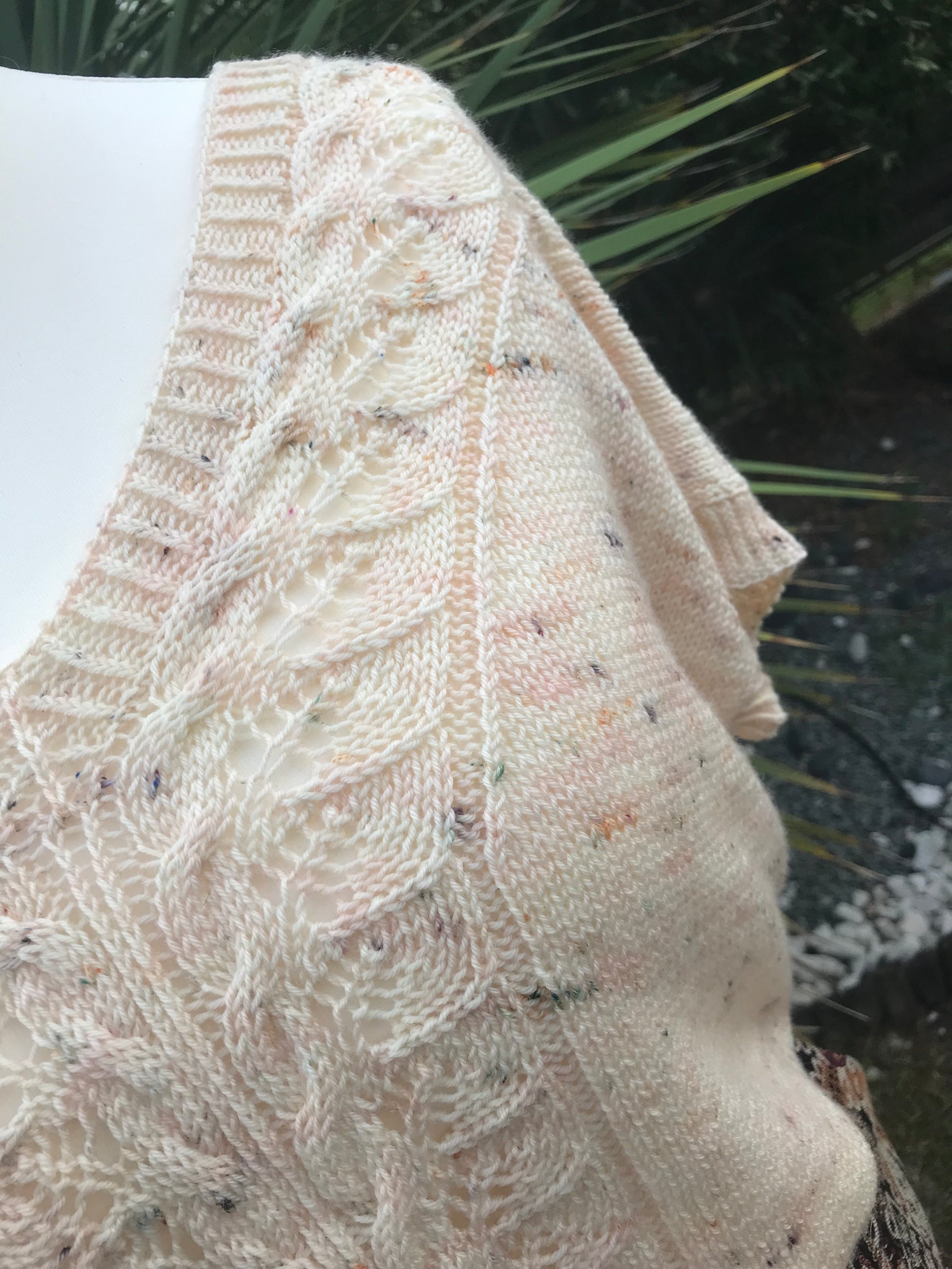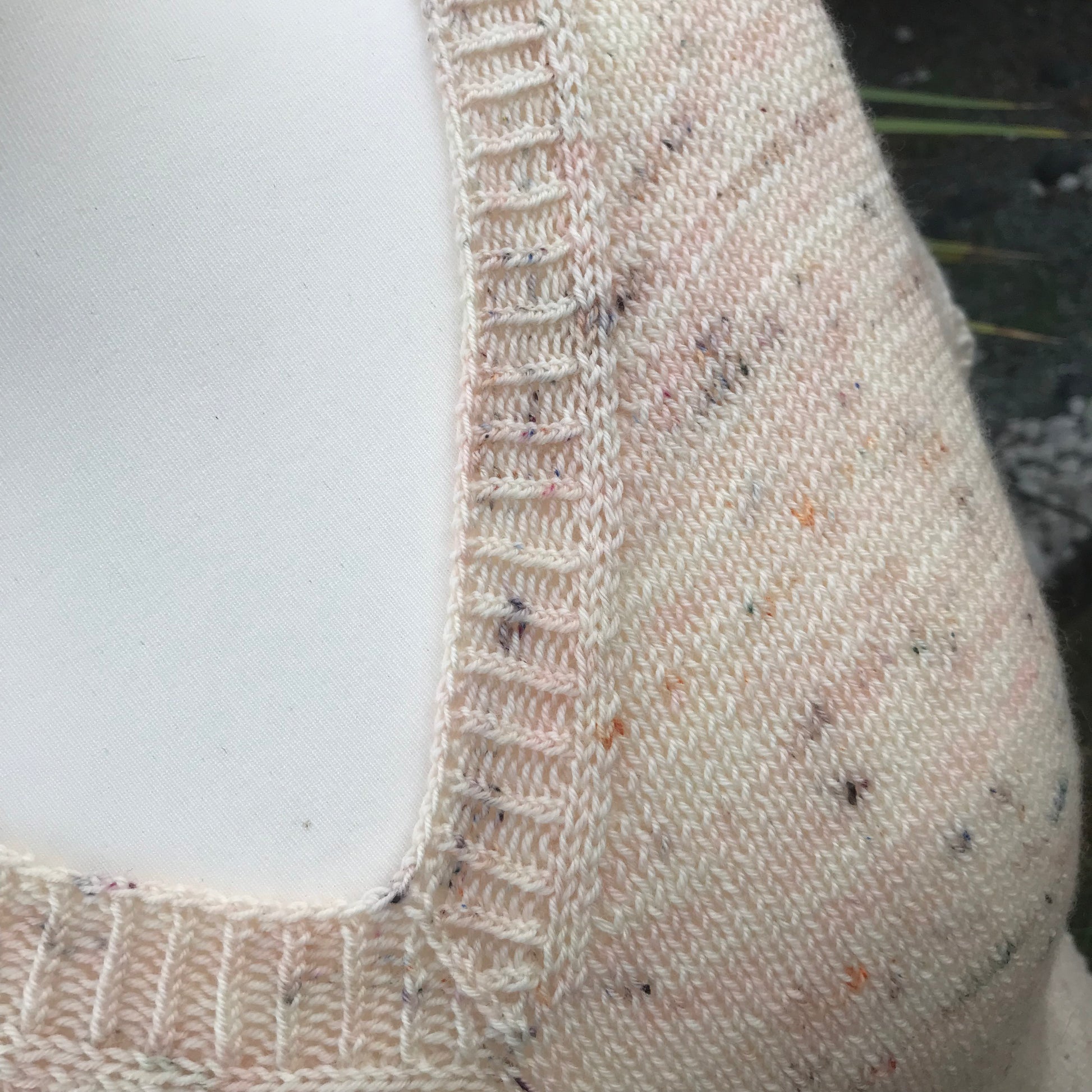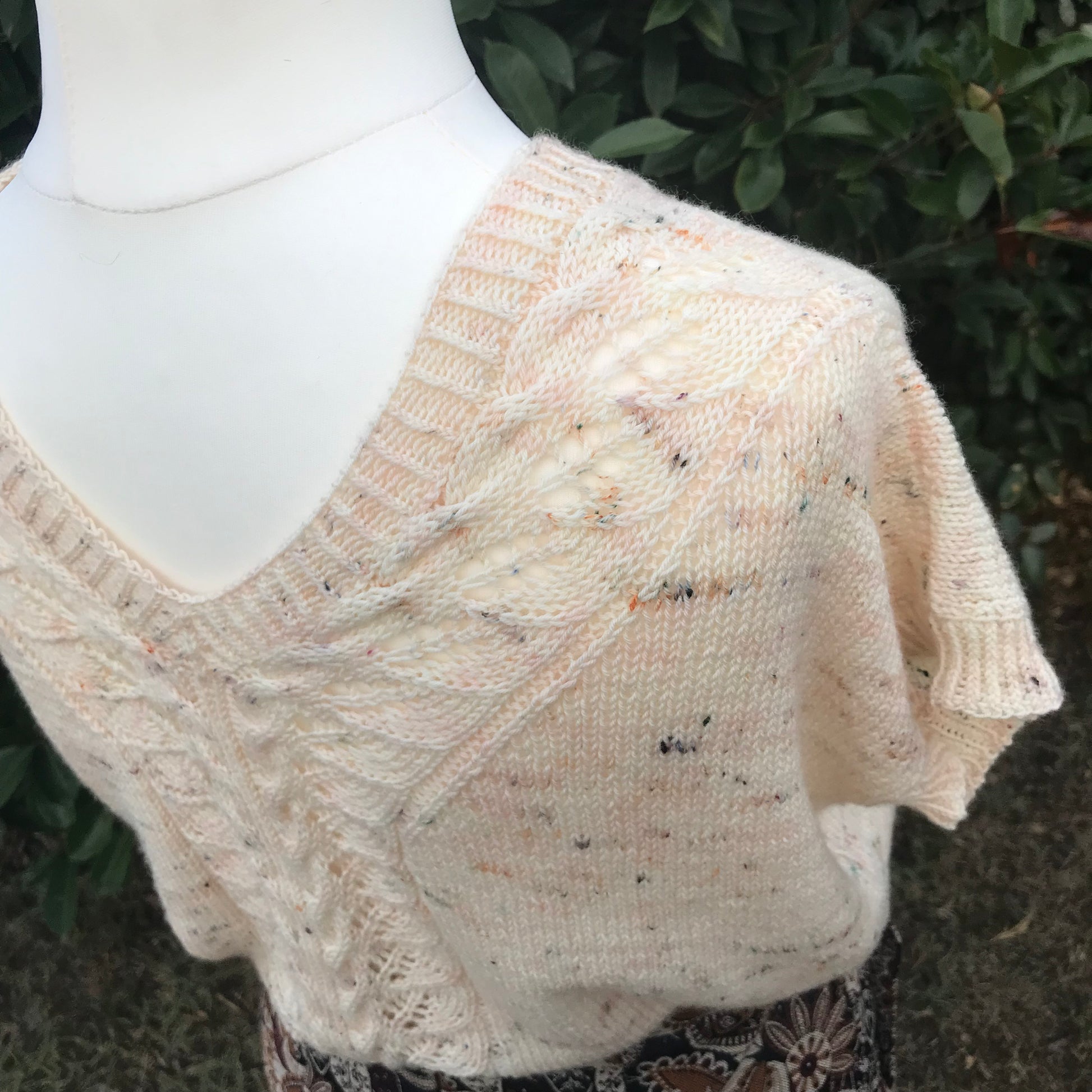 Le T-shirt Mademoiselle Kate est tricoté du bas vers le haut, avec un joli panneau de dentelle central qui viendra souligner l’encolure en V. Ce joli panneau de dentelle est prévu pour être porté comme vous le souhaitez, soit devant, soit derrière, au grés de vos envies et de vos folies.