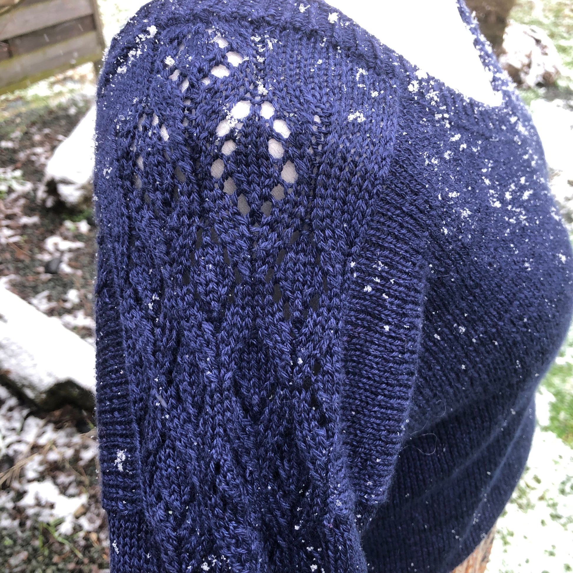 Le pull Coffee est réalisé dans les laines d’Audrey (Teinturlurée) dans sa base BFL – Cachemire et soie en coloris We Cut The Night pour la version longue et Me Mind And Me pour la version courte. Cette laine est un petit bijou tant sur les aiguilles qu’au porté et donne un drapé tout en douceur à votre tricot.