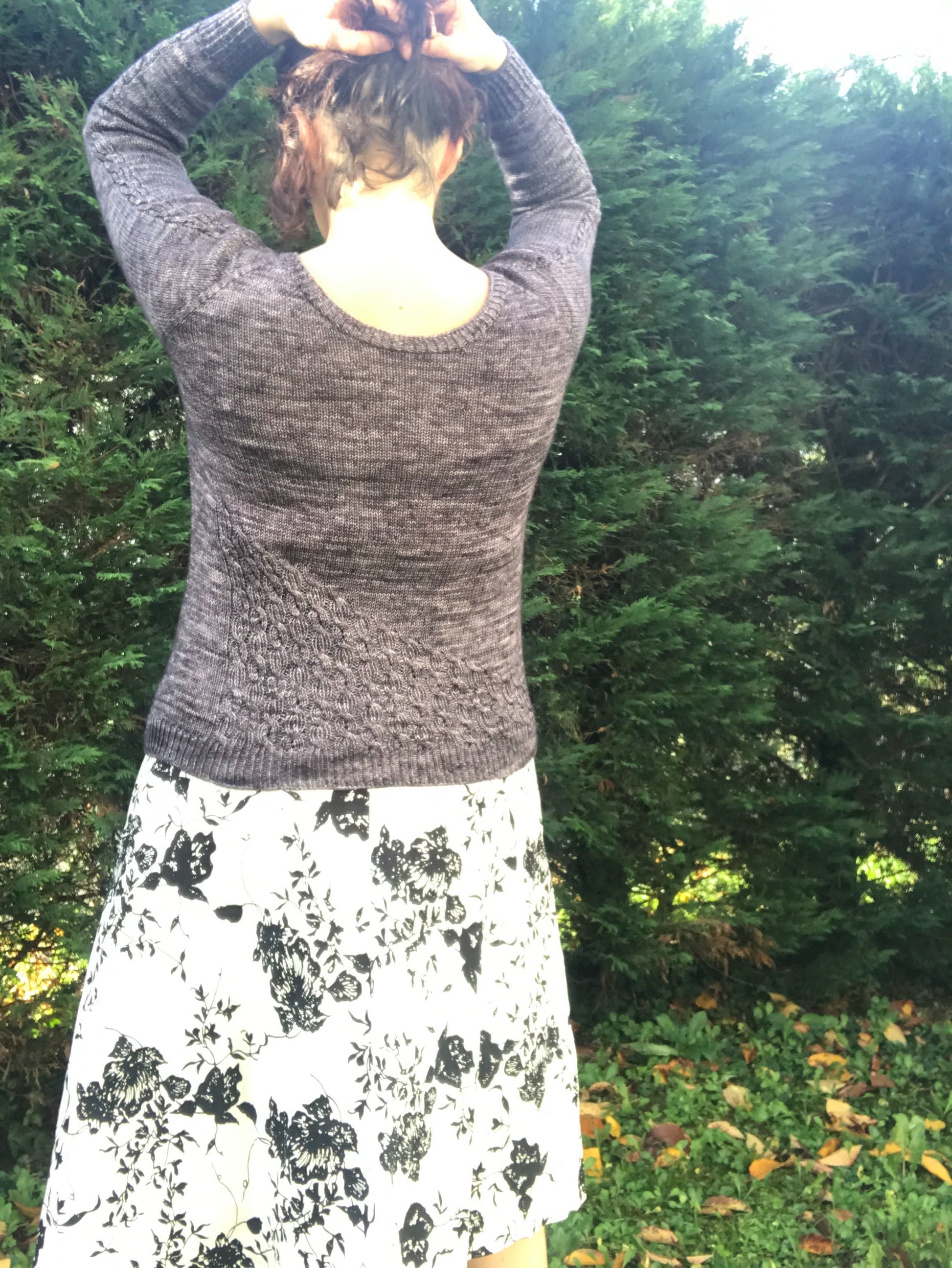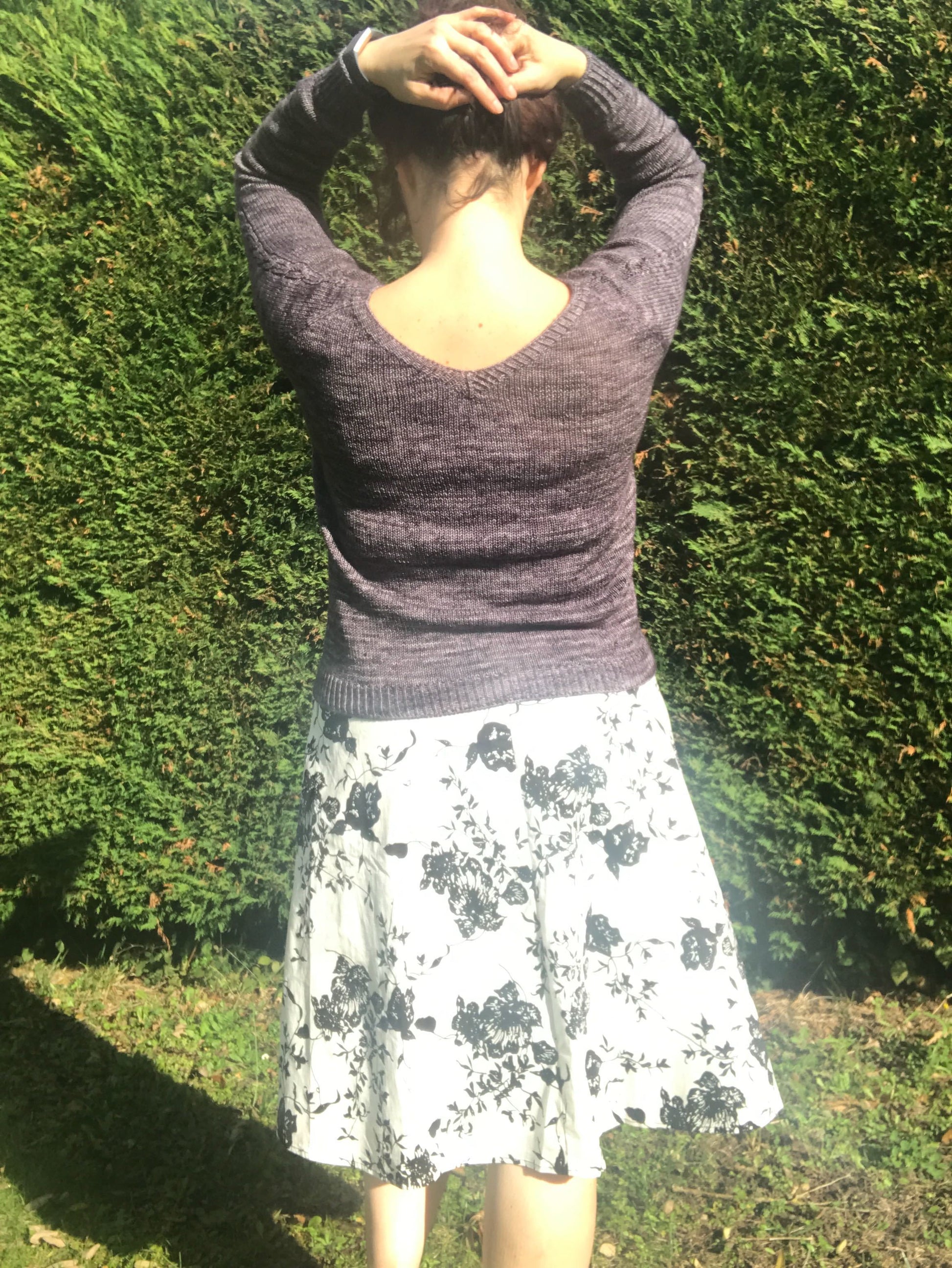 Le pull Constance est un pull ultra féminin que vous pourrez porter dans un sens ou dans l’autre. Vous trouverez un col en V que j’ai choisi de placer dans le dos et un col rond dégagé sur le devant. De jolies torsades viennent compléter cet ensemble sur les manches et le devant du pull. Je vous propose néanmoins de placer ces torsades soit devant, soit dans le dos soit des deux côtés. A vous d’imaginer le pull de vos rêves.