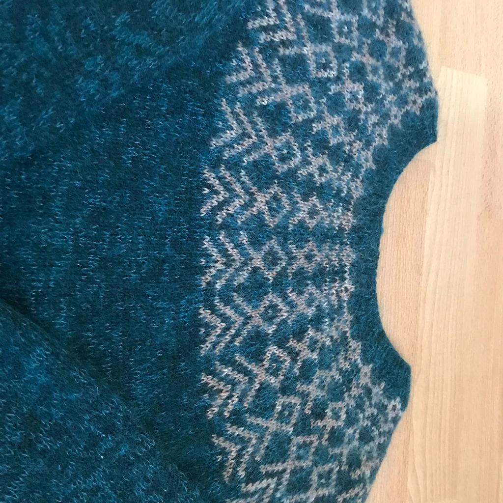 Version en laine BFL Maison Corlène (400 m/100 g) doublée Kid-silk mohair de Drops (210 m / 25 g) :