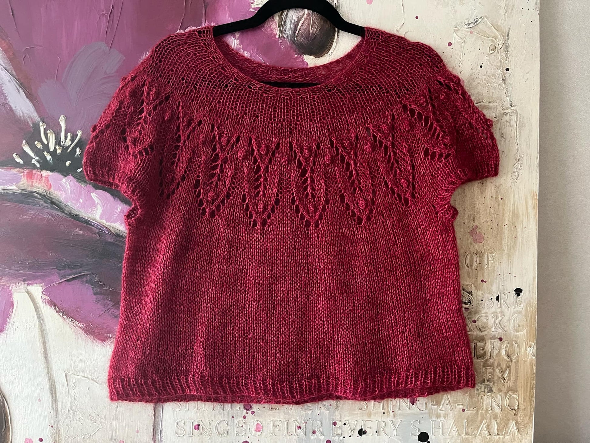 Ses manches courtes et sa coupe légèrement ample en font une pièce confortable et élégante, facile à porter au quotidien. Le motif de dentelle rythme le début du tricot dans une construction en rond intuitive, avec juste ce qu’il faut de détails pour captiver les aiguilles sans jamais décourager. Une jolie façon d’ajouter une touche de féminité dans un vêtement simple et doux.